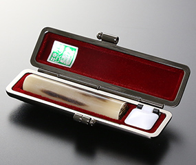陸牛の角が主な原材料です。印材にある柄(模様)の多さでランク分けされており、色が少なければ少ないほどランクが高くなります。